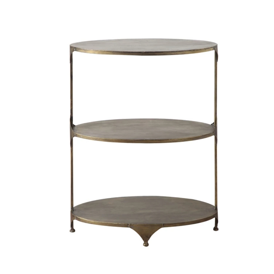 Oval Metal 3-Tier Shelf, Antique Gold Finish