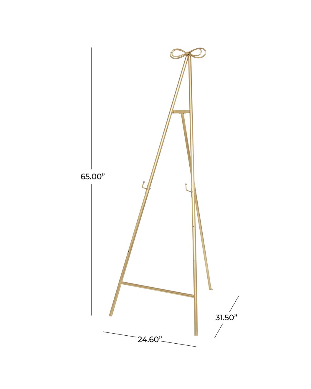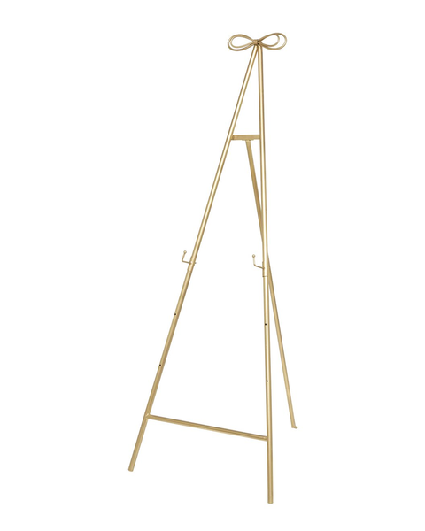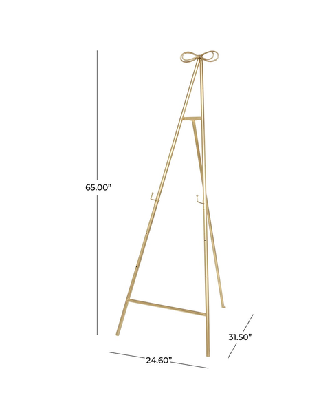 Description: Brass easel with bow accent on top. Adjustable legs.