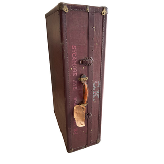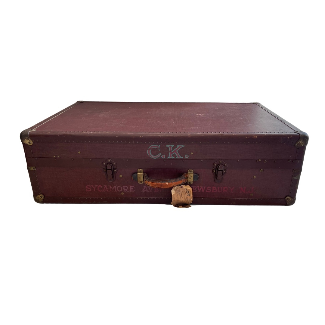 Description: A beautiful original vintage trunk. Maroon color with original hand lettering!