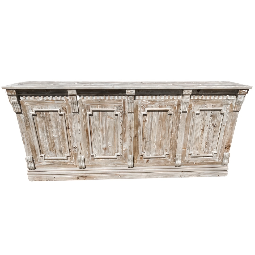 Description: Clarke is a beautiful white wash bar. It is traditional yet vintage and is perfect for any event!