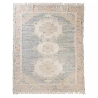 Description: The Desi rug is pale blush & blue woven rug that is perfect for any lounge!