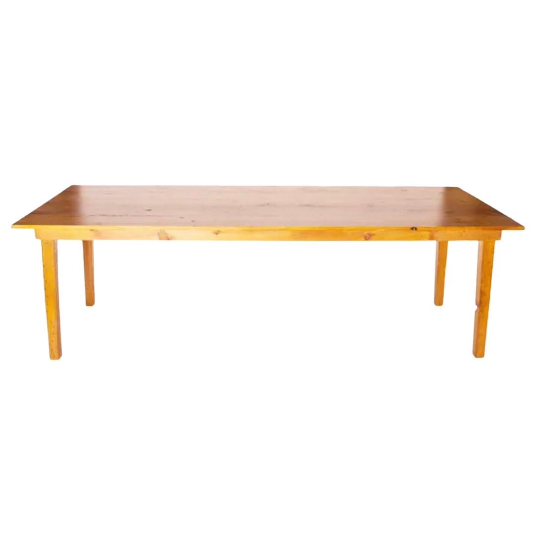 Description: Our farm tables are made from reclaimed wood and are 8ft long. They seat 8-10 people. 10 if you have people on both ends and make for a warm, inviting atmosphere.