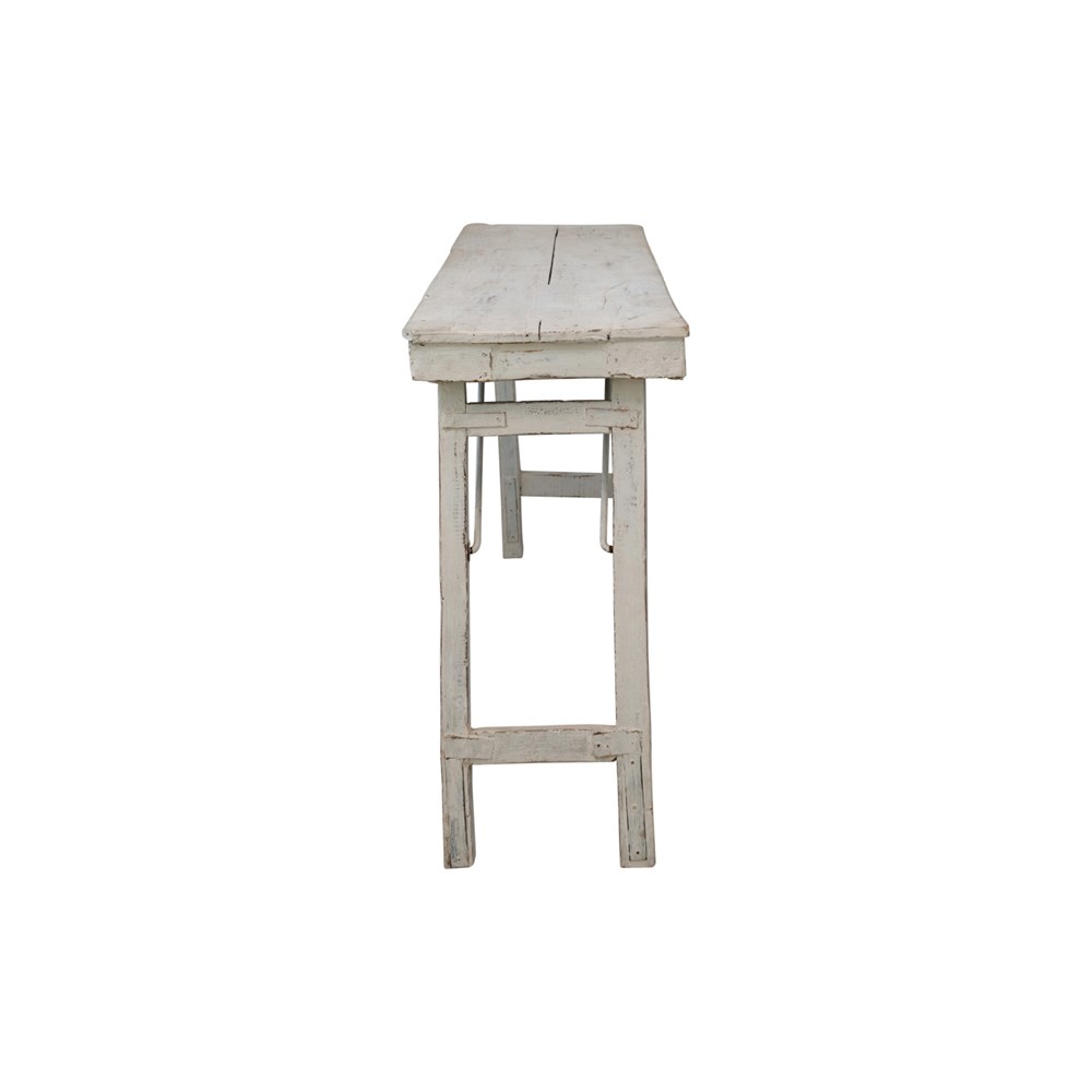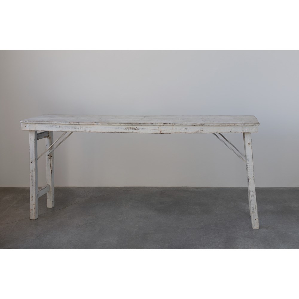 Description: 66"L x 17"W x 33"H Reclaimed Wood Folding Table, Whitewashed