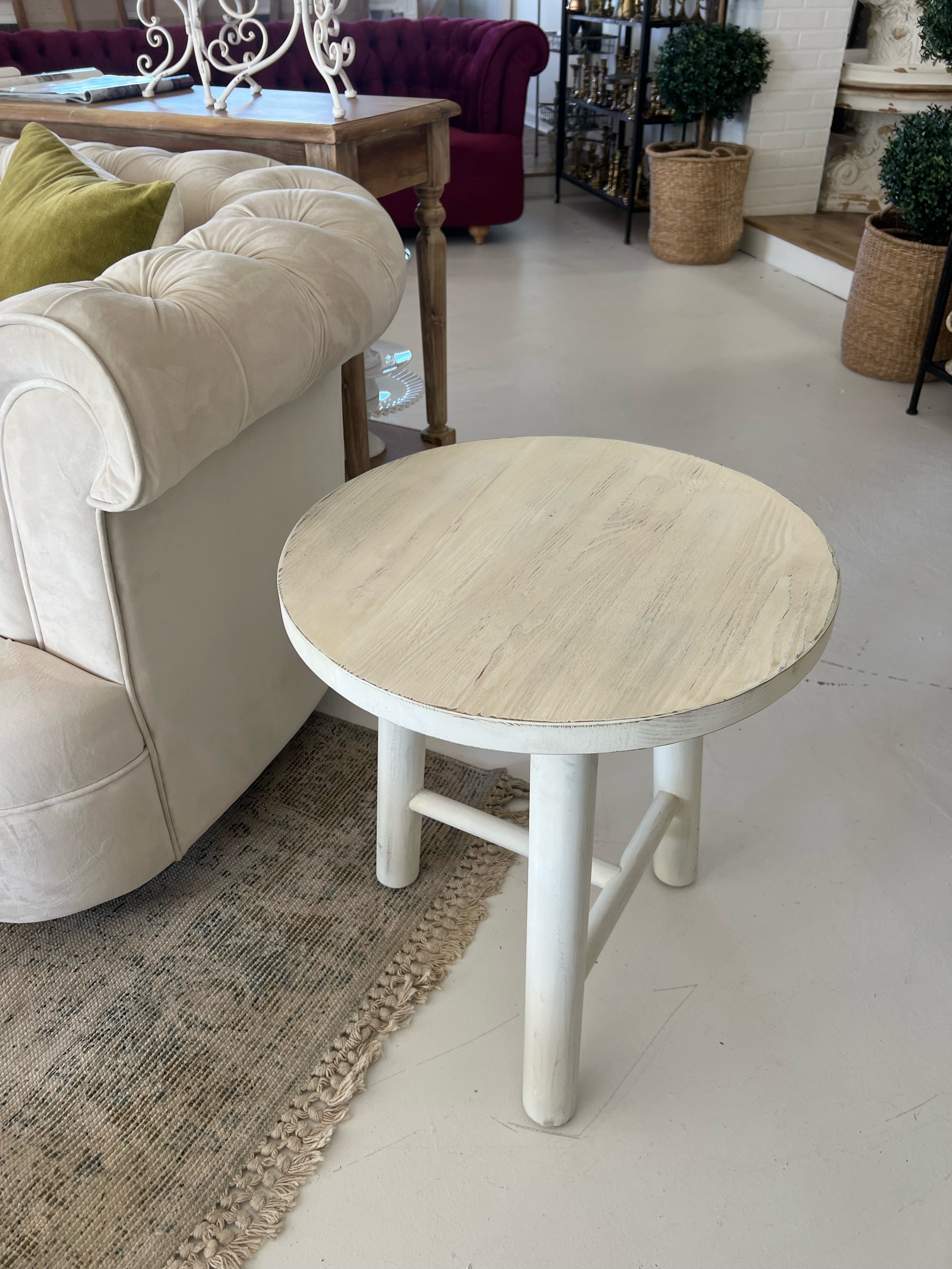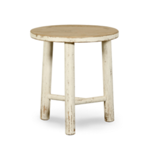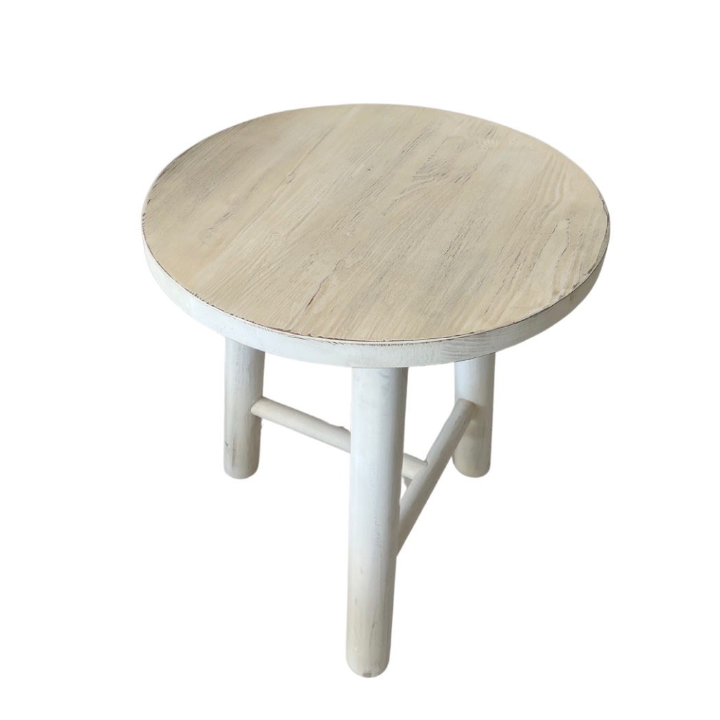 Description: White wash end table that pairs perfectly with Genevieve.