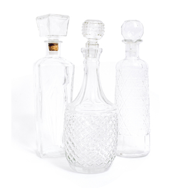 Description: Glass decanters are assorted styles and are priced individually.
