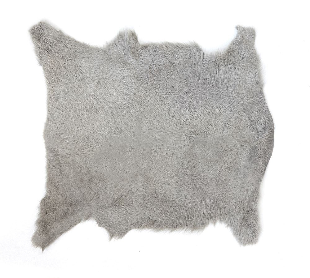 Description: Goat Fur Rug in gray 2 x 3 ft. perfect for any small lounge or over the back of a chair.