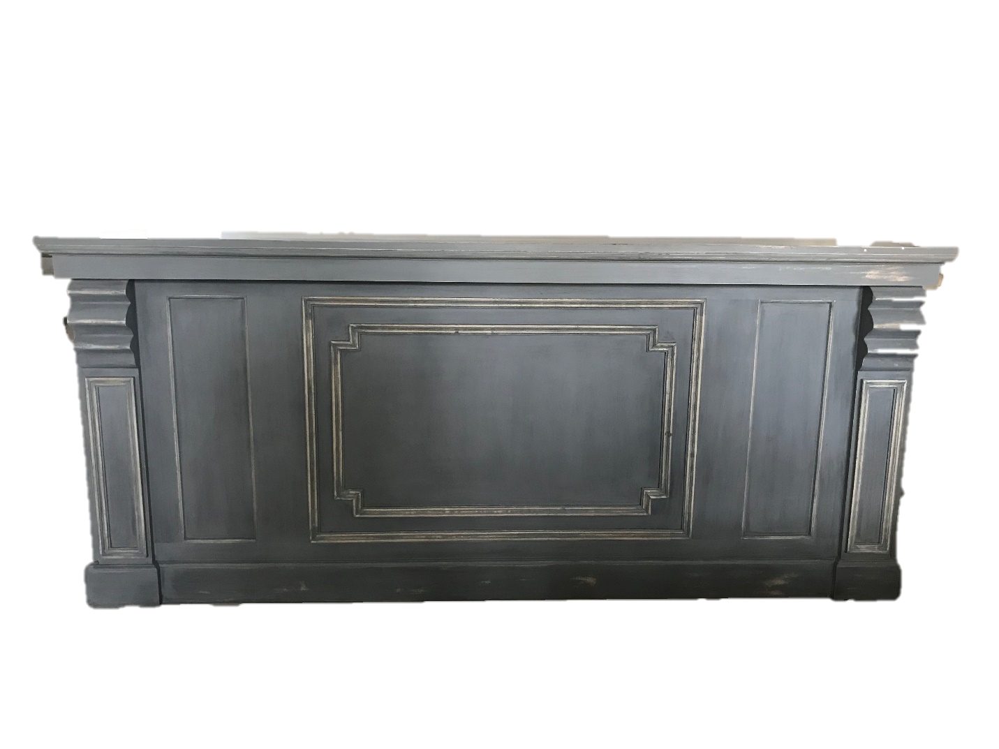 Description: Birch wood bar with a black distressed finish. Has a shelf behind the bar to hold extra glasses or drinks!