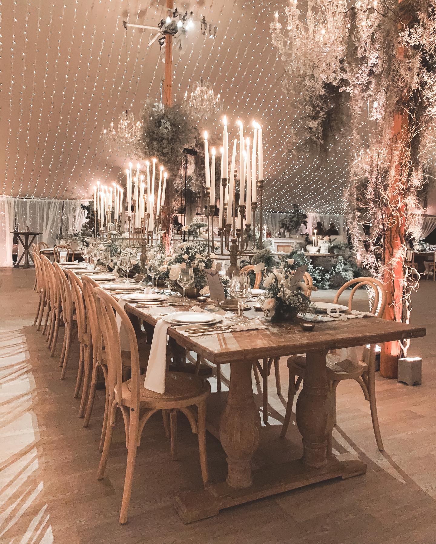 Description: Our reclaimed elm farm tables are the perfect addition to your event! They sit 4 comfortably on each side and can accomodate one at each end for a total of 10 guests.