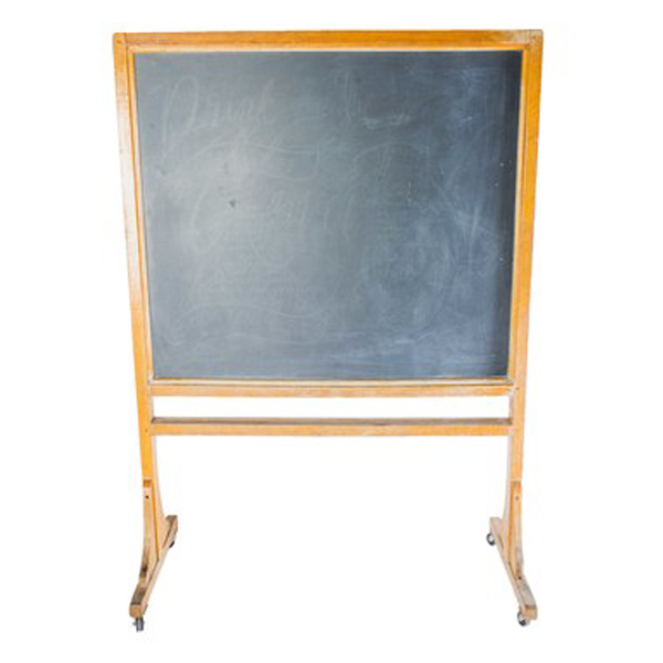 Description: This amazing vintage chalkboard is a genuine antique piece, freestanding on wheels.