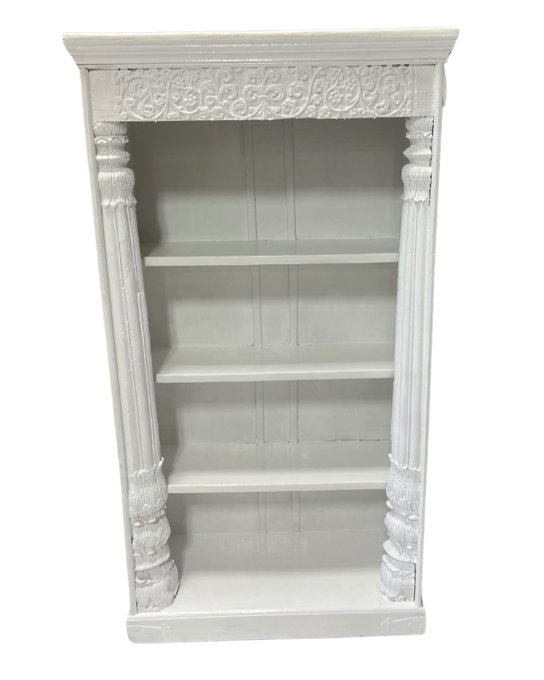 Description: A vintage white shelf with 4 shelves including the bottom space.