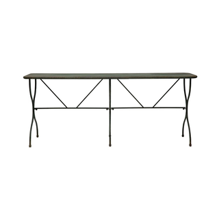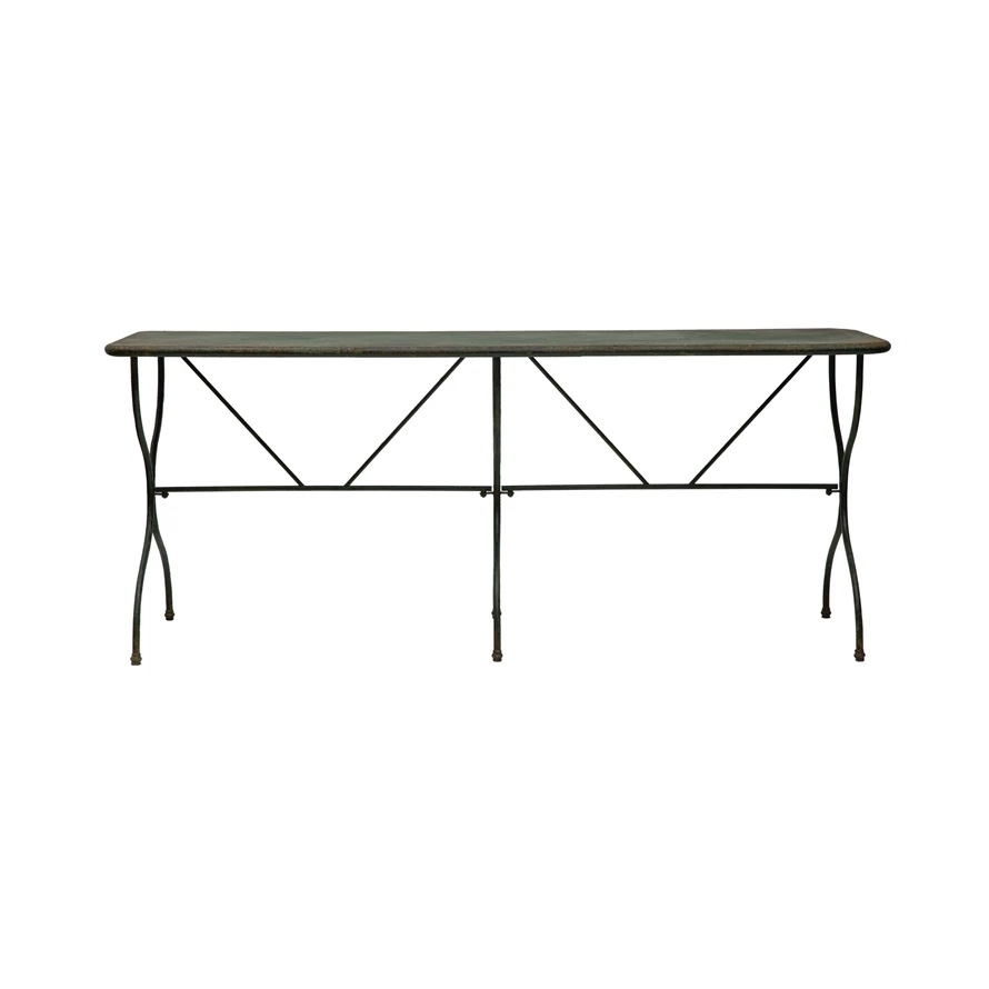 Description: Metal distressed table with a green finish. Such a versatile piece and can be used for almost anything!