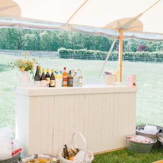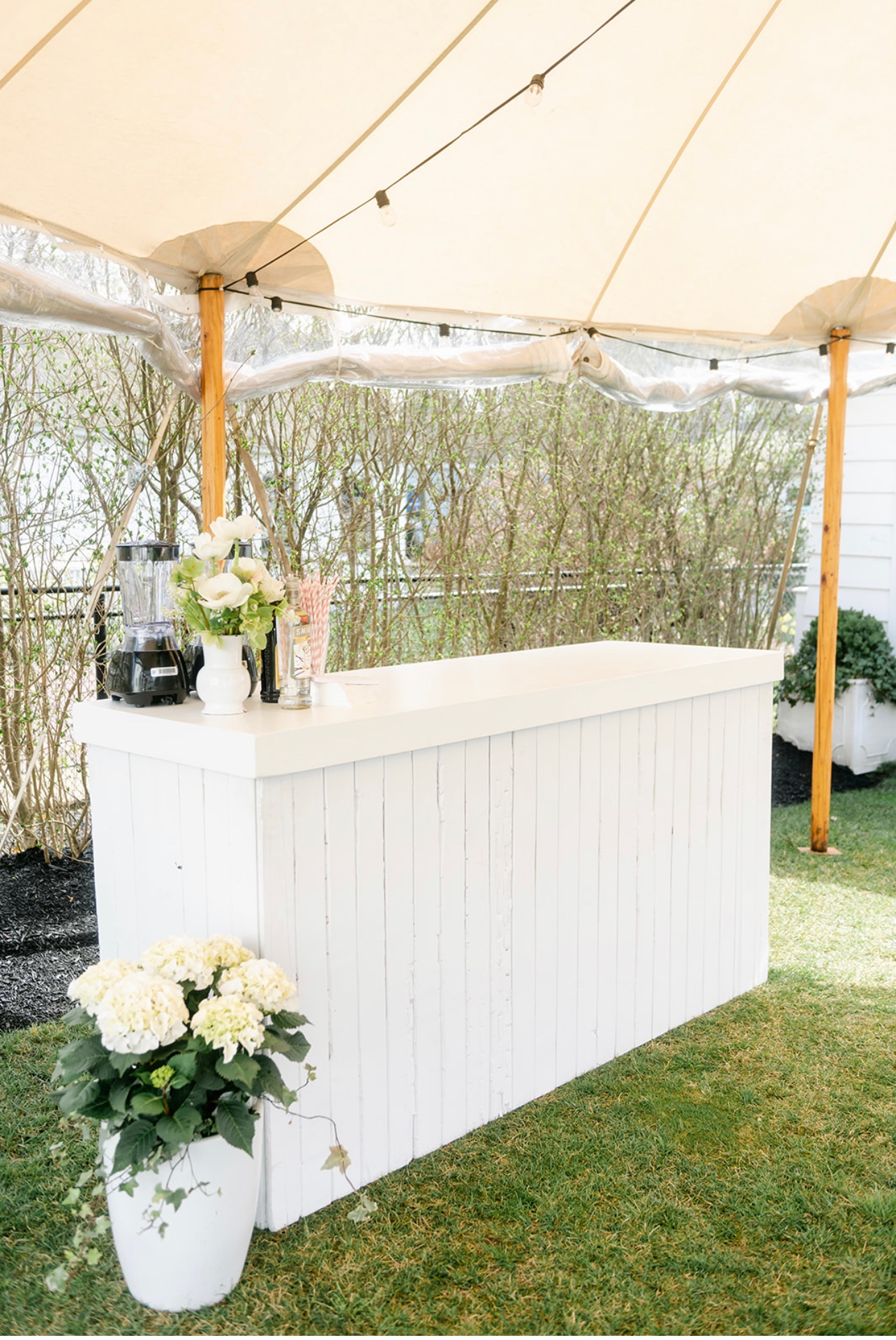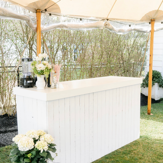 Description: Our Pearl bar is perfect for any event! Pearl has a white rustic distrssed face and all white top!