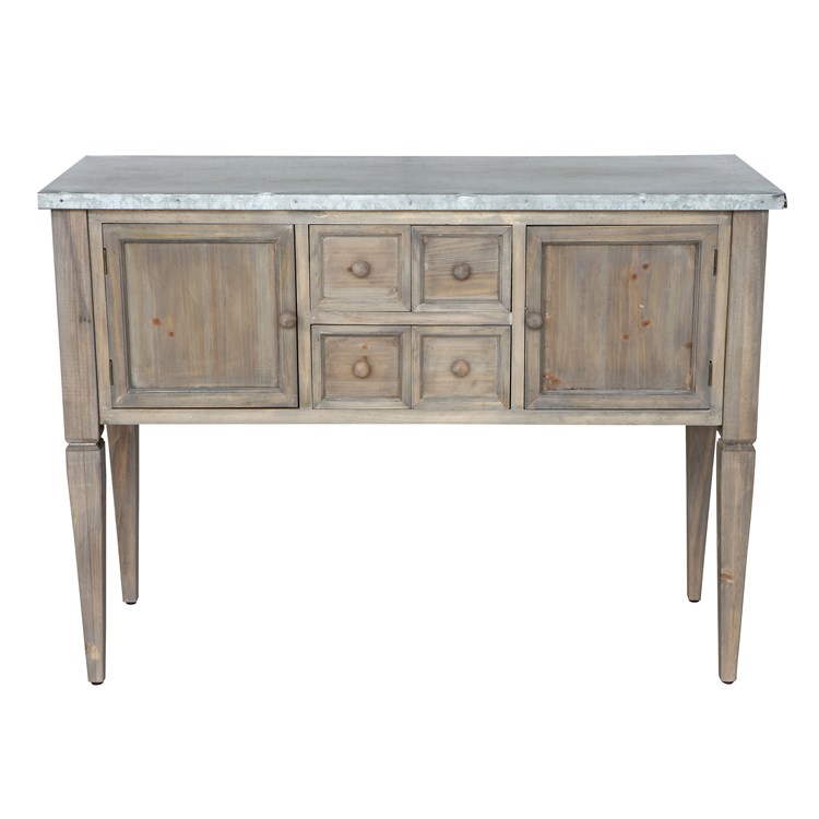 Description: Wood & Distressed Metal Side Board. Perfect for dessert displays or gift table