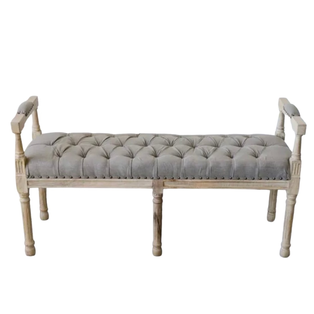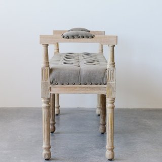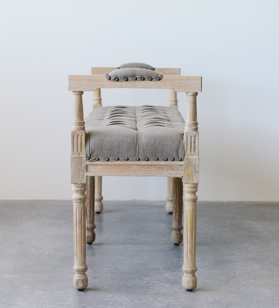 Description: 51"L x 16-1/2"W x 27-1/2"H Mango Wood & Cotton Tufted Bench