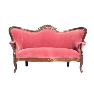 Description: A petite, pretty in pink loveseat for two. Seat height 16".