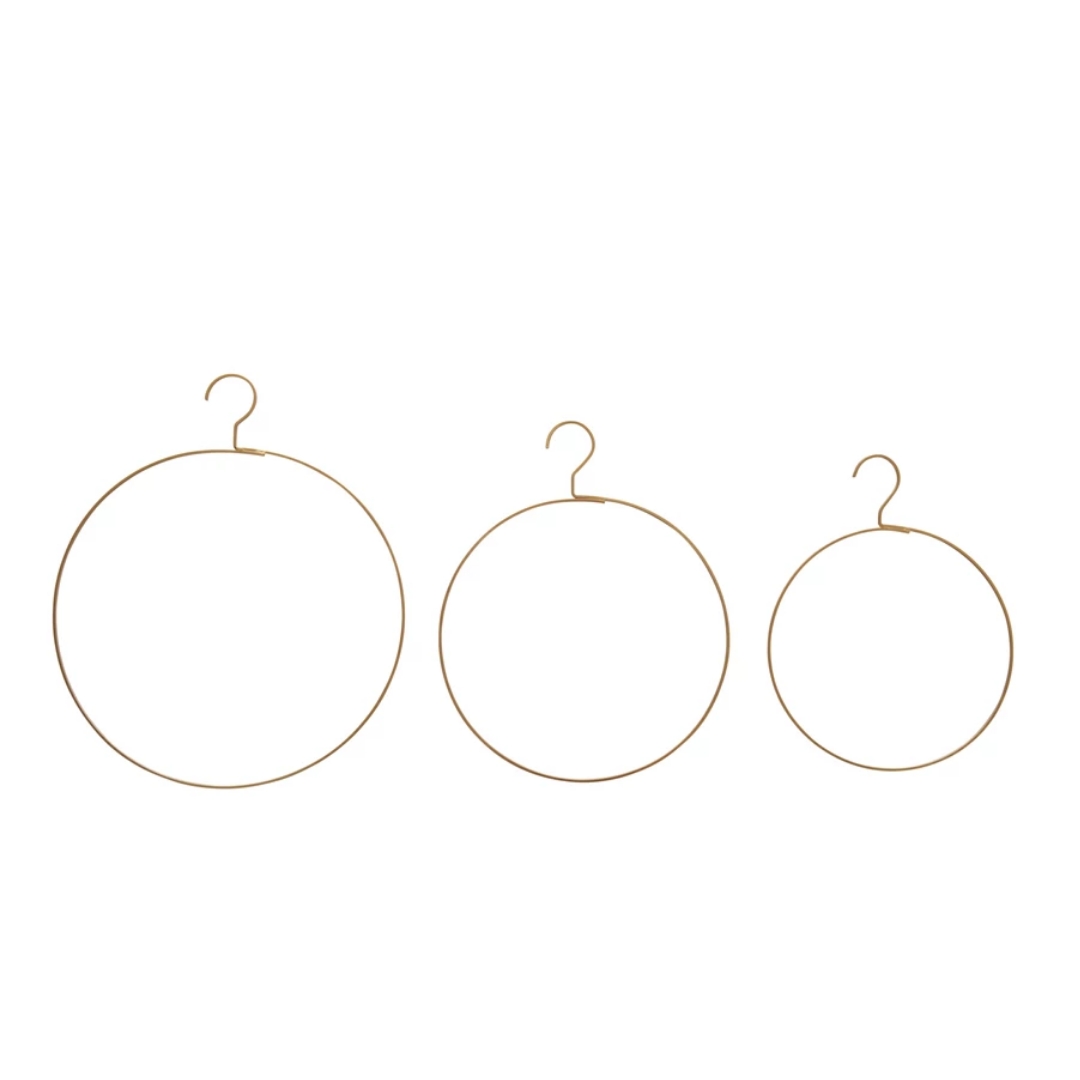 Description: These rings are a unique and festive way to decorate any home. Made out of metal and each coming with a hook, these rings come in a set of 3 and are perfect for hanging on walls. Whether decorated with florals or other festive items, this unique display set is a must-have.