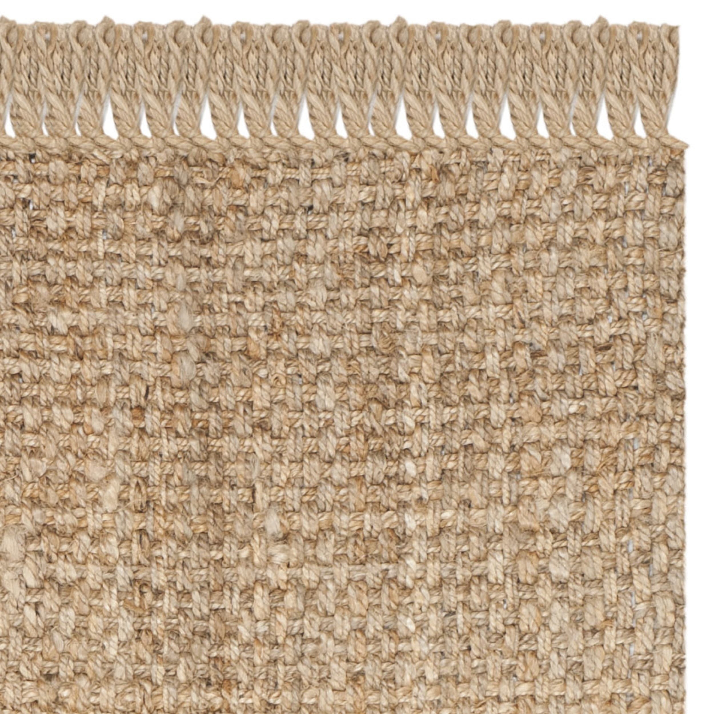 Description: The perfect choice for a relaxing textured look, this natural fiber rug charmingly highlights casual beauty. This rug features chunky braided fringes to add a boho look and feel to any lounge or event.