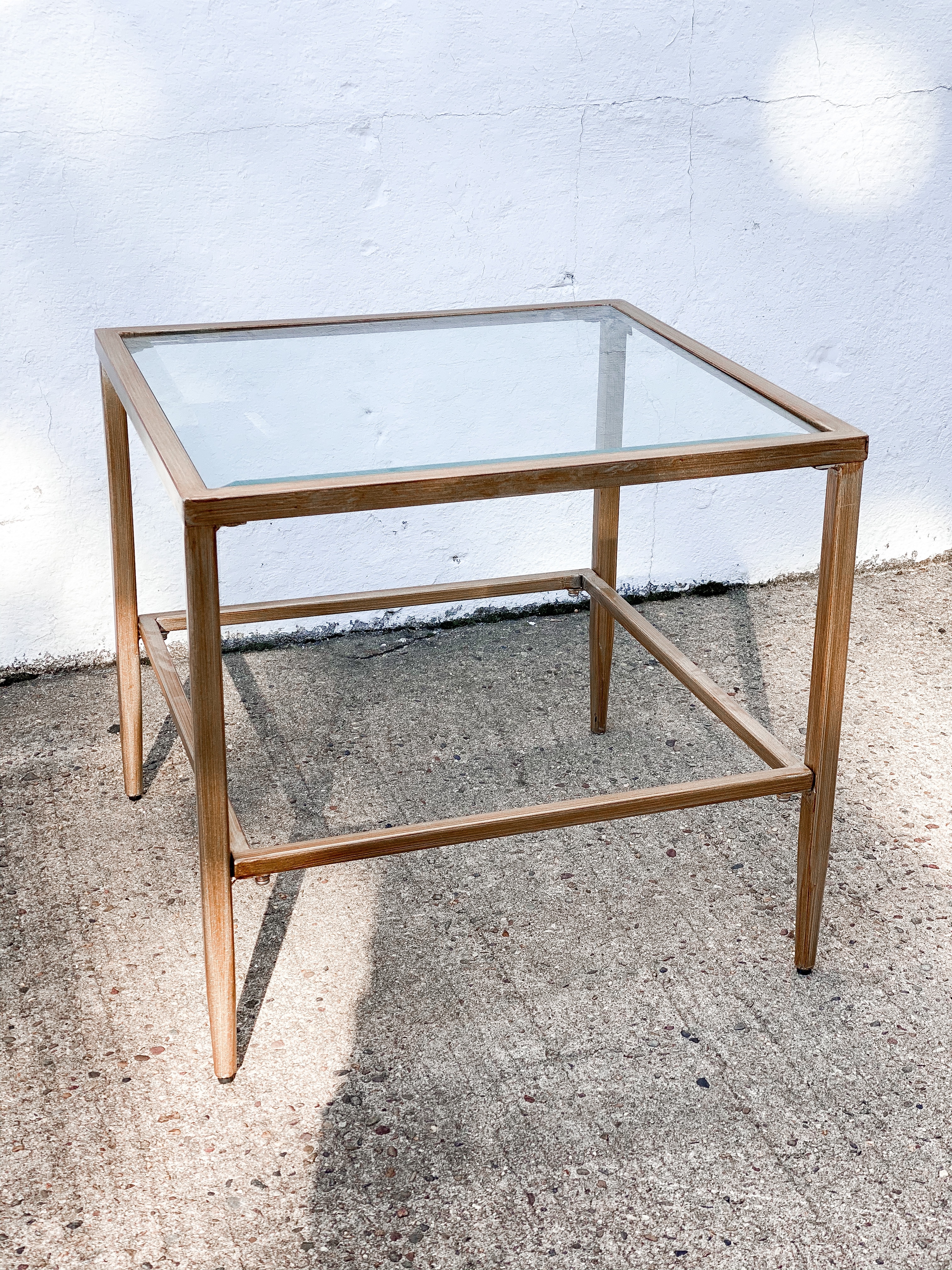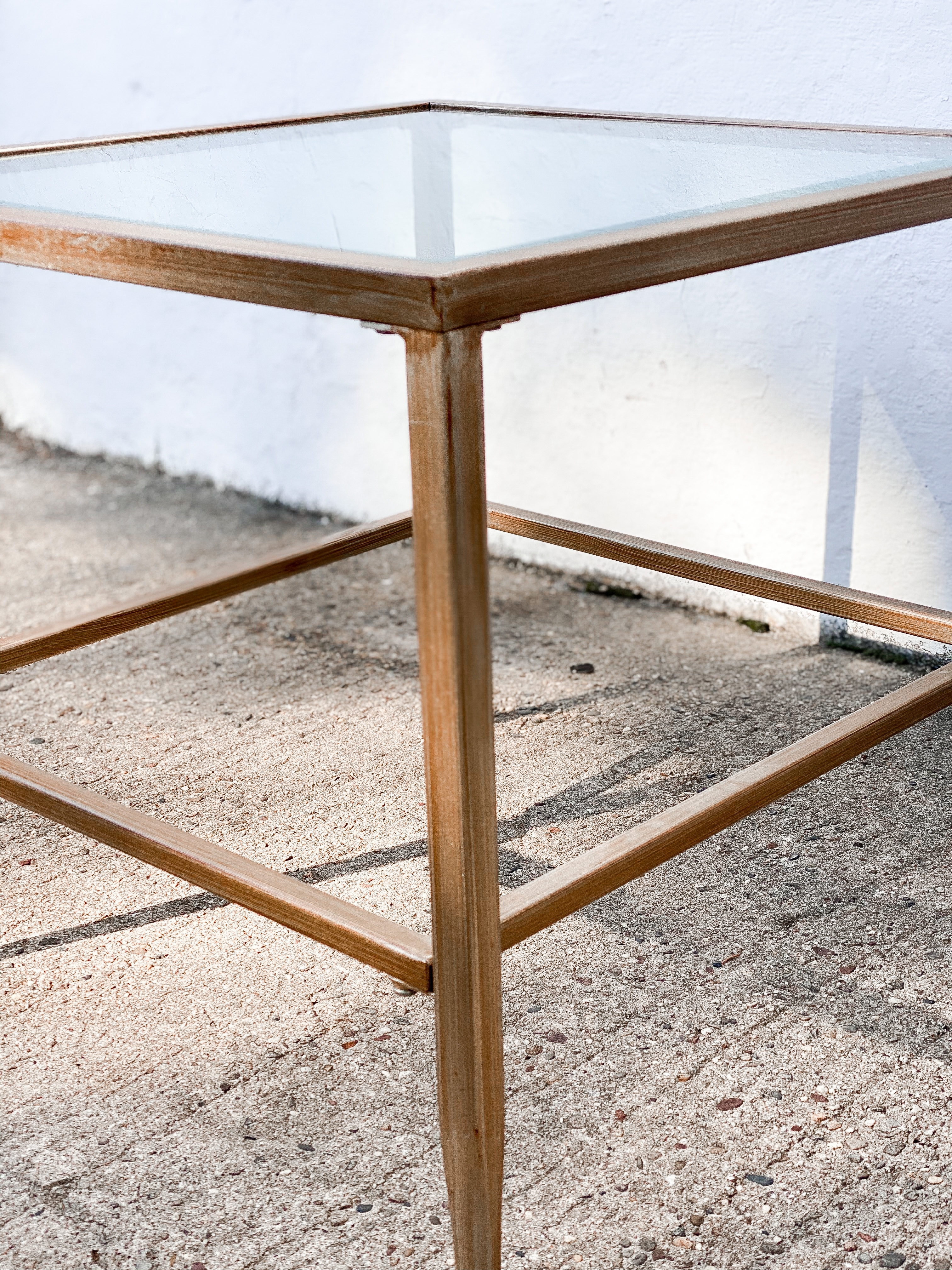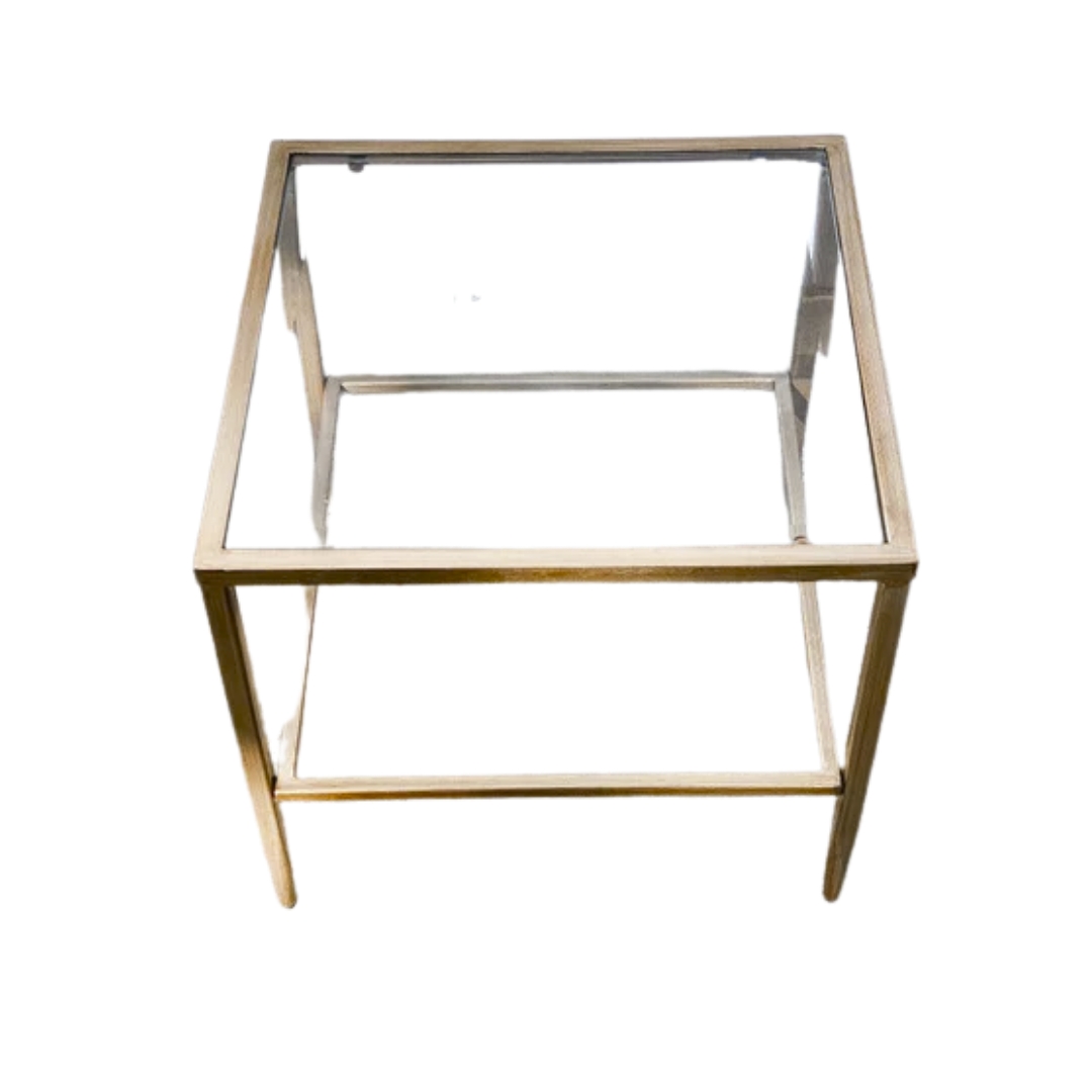 Description: Stella is a beautiful addition to any lounge. Vintage brass metal with a glass top.