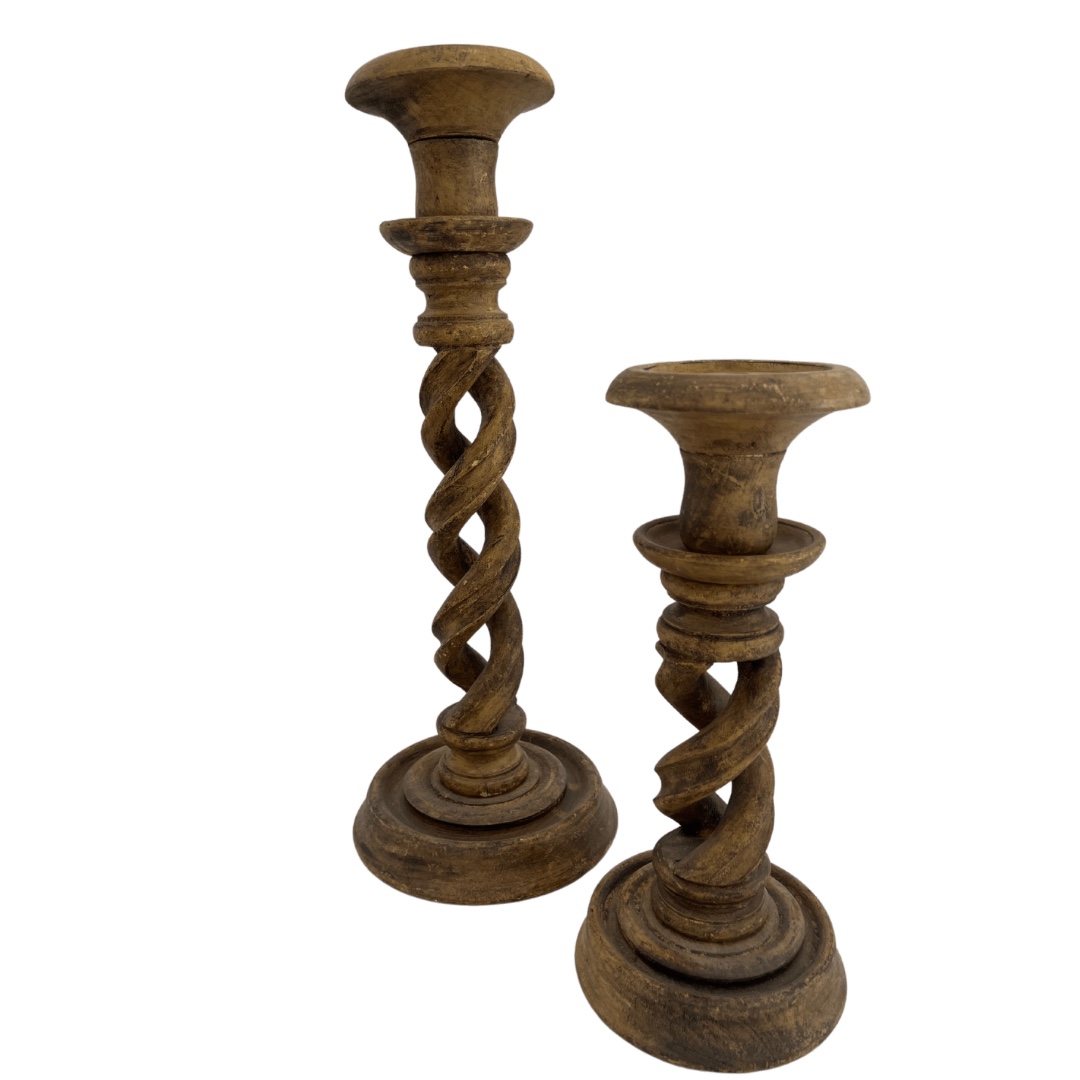 Description: Set of 2 wooden candlesticks.